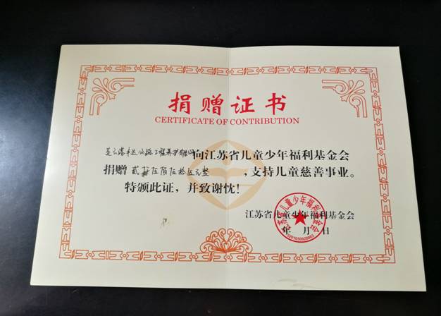 贈人玫瑰,手留余香;奉獻愛心,收獲希望。7月初,豐達公司廣大干部職工積極響應(yīng)省、市實施“脫貧攻堅建檔立卡戶少兒病殘救助”項目的號召,踴躍捐款獻愛心。7月4號下午,公司將籌集的2555元善款直接送捐至連云港市婦聯(lián)家兒部,獲得了江蘇省兒童少年福利基金會授予的捐贈證書。今后,公司將繼續(xù)增強企業(yè)服務(wù)社會的能力,組織開展更多形式的公益活動,關(guān)愛社會弱勢群體,傳遞溫暖正能量。