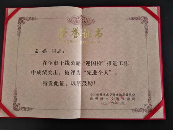 豐達(dá)公司黨總支書記、董事長(zhǎng)王超同志在全市干線公路“迎國(guó)檢”工作中,被市交通運(yùn)輸局評(píng)為全市干線公路“迎國(guó)檢”推進(jìn)工作“先進(jìn)個(gè)人”。 劉竹來 2016年3月9日