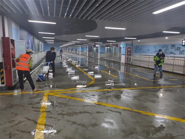 ? ? ? 為全面提升綜合客運樞紐停車場“五一”節(jié)前現(xiàn)場環(huán)境衛(wèi)生,為廣大旅客提供干凈整潔的出行環(huán)境。4月29日晚,在連云港站******一列火車運營下客結(jié)束后,豐達(dá)物業(yè)管理公司組織了10名員工,對客運樞紐地下停車場出租車道、社會車道等主要通道的地面痰跡、污跡、頑跡等進(jìn)行了全面清理,清理面積近3500平米。