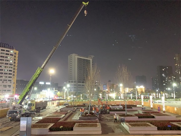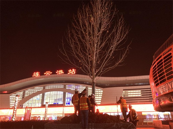 豐達(dá)公司錯(cuò)峰作業(yè)做好綜合客運(yùn)樞紐周邊綠化提升工程