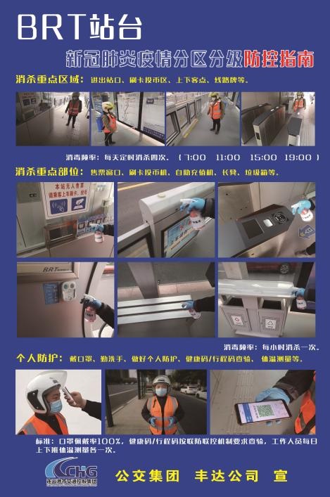 隨著連云港市高鐵站和公共客運(yùn)交通逐步恢復(fù)運(yùn)營,為進(jìn)一步筑牢疫情防控防線,嚴(yán)密落實(shí)疫情防控措施,規(guī)范從業(yè)人員防控消殺操作規(guī)程,豐達(dá)公司根據(jù)不同物業(yè)管理項(xiàng)目的實(shí)際情況,分別制作了綜合客運(yùn)樞紐、BRT站臺(tái)及普通公交站亭《新冠肺炎疫情分區(qū)分級(jí)防控指南》展板和海報(bào)共計(jì)百余張,指南明確了重點(diǎn)區(qū)域消殺時(shí)間、重點(diǎn)部位消殺頻率及個(gè)人防護(hù)要求。同時(shí)公司迅速組織各物管項(xiàng)目從業(yè)人員針對(duì)防控指南內(nèi)容進(jìn)行培訓(xùn)教育,通過培訓(xùn)進(jìn)一步提高了從業(yè)人員防范意識(shí),規(guī)范了操作流程,為物管項(xiàng)目疫情防控常態(tài)化提供了保障。