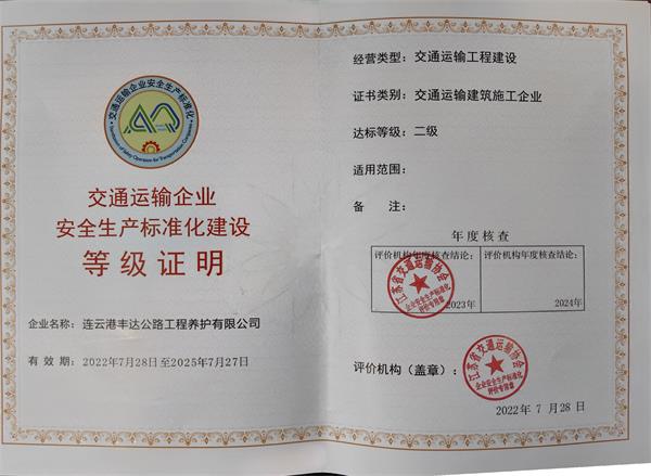 7月5日,豐達(dá)公司順利完成交通運(yùn)輸二級(jí)安全生產(chǎn)標(biāo)準(zhǔn)化企業(yè)年度復(fù)審工作。