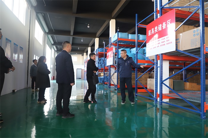 金桂華一行對應(yīng)急處置中心的應(yīng)急機(jī)械設(shè)備、應(yīng)急物資儲(chǔ)備庫的設(shè)施和救災(zāi)物資進(jìn)行了檢查,詳細(xì)詢問了應(yīng)急物資裝備儲(chǔ)備、物資出入庫程序、裝備管理信息系統(tǒng)、應(yīng)急人員培訓(xùn)等情況,并參觀了豐達(dá)公司橙色突擊隊(duì)隊(duì)部,現(xiàn)場聽取了馬軻關(guān)于應(yīng)急機(jī)械設(shè)備配置、救援隊(duì)伍和橙色突擊隊(duì)建設(shè)等相關(guān)情況匯報(bào)。