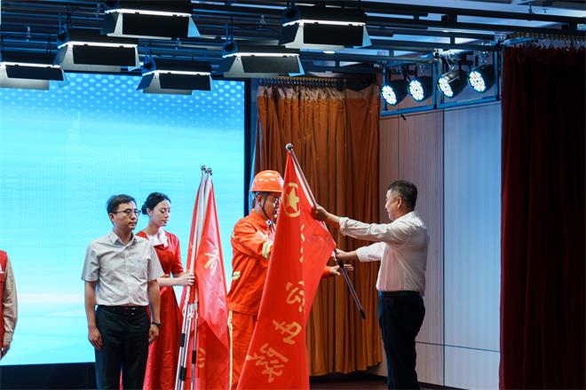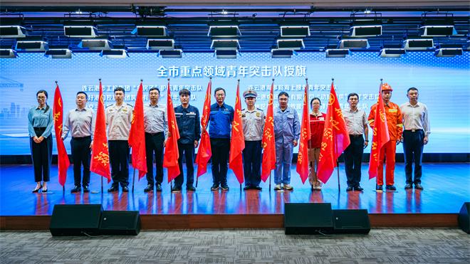 5月23日,團市委聯(lián)合市委市級機關(guān)工委、市發(fā)改委、市民政局、市應急管理局、市消防支隊在全市深入開展“2025年連云港市服務重點企業(yè)、重大項目青年發(fā)展項目”啟動儀式。豐達公司作為重點領(lǐng)域青年突擊隊代表上臺接受授旗,以一抹亮眼橙色閃耀全場,接過了象征使命與擔當?shù)那啻簯?zhàn)旗。