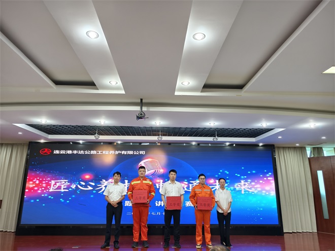 為弘揚(yáng)新時(shí)代勞動(dòng)精神,展現(xiàn)公路養(yǎng)護(hù)人的使命擔(dān)當(dāng),7月18日上午,豐達(dá)公司工會(huì)成功舉辦首次“匠心養(yǎng)護(hù) 暢通未來”主題演講比賽。9名參賽職工用真摯的情感和生動(dòng)的故事,為公司干部職工呈現(xiàn)了一場震撼心靈的精神盛宴。黨總支書記、董事長王梁洲及領(lǐng)導(dǎo)班子成員、員工代表共50余人現(xiàn)場觀賽。