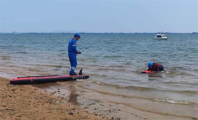 演練在模擬“游客落水”的場景中正式啟動。演練隊(duì)伍迅速進(jìn)入預(yù)定位置,有序開始作業(yè)。此次演練重點(diǎn)對岸邊拋投救生圈救援、水上救生飛翼和飛行救援艇救援、無人機(jī)空中拋投救生圈等4個科目進(jìn)行實(shí)操實(shí)訓(xùn)。演練過程中,參演人員行動迅速,操作有序,順利完成所有設(shè)置科目,達(dá)到了演練的預(yù)期目的。