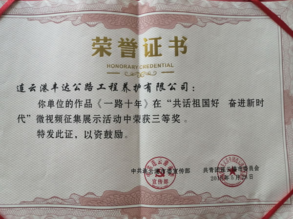 “共話祖國好 奮進新時代”微視頻征集活動三等獎